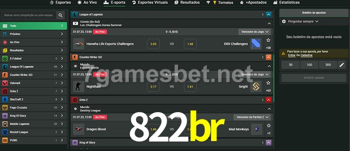 O 822br oferece uma grande seleção de opções de apostas em e-sports com probabilidades competitivas